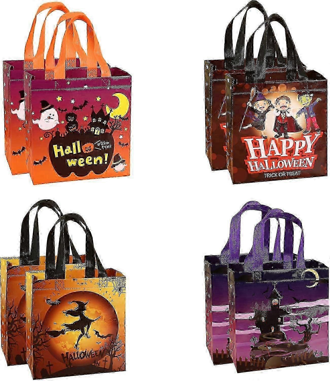 8Pcs Halloween Gift Bags Tote Bags,Halloween Treat Bags Halloween Party Bags for Gifts Wrapping,Trick or Treat,Halloween Goodie Bags Party Supplies (M