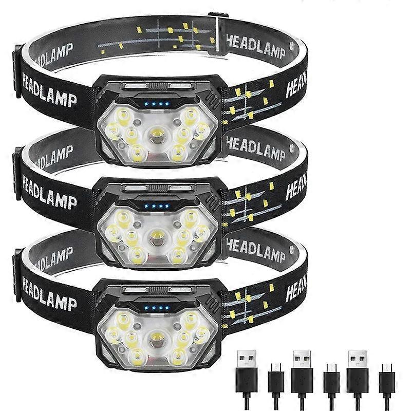 9 Led Headlamp Rechargeable, Motion Sensor, 1200mah, Usb, For Fishing, Camping,. Illuminate Your Surroundings with This Advanced Headlamp Featuring 9 High-brightness LED Bulbs, Including a Central Large LED Surrounded by Eight Smaller Ones, Providing Up to 2000 Lumens for Optimal Visibility Even in the Darkest Environments. Key Features: - Powerful Lighting: Equipped with 9 LEDs Offering 2000 Lumens of Brightness. - Versatile Modes: Choose from 6 Key Modes—Spotlight High, Spotlight Low, Floodlight High, All Lights, Red Light, and Red Strobe Light. Includes 4 Motion Sensor Modes for Hands-free Operation. - Long-lasting Power: Rechargeable with a High-capacity Lithium-ion Battery, Offering Up to 12 Hours of Continuous Use. Comes with a Type-C Charging Cable for Convenient Recharging. - Durable and Waterproof: Designed to Withstand Splashes and Harsh Environments, Ensuring Reliable Performance in All Weather Conditions. - Comfortable Fit: Lightweight with a 60° Adjustable Lamp Head and an Elastic Headband for a Secure and Comfortable Fit on Adults, Kids, or Helmets. This Headlamp is Perfect for Any Adventure, Providing Reliability, Versatility, and Comfort..