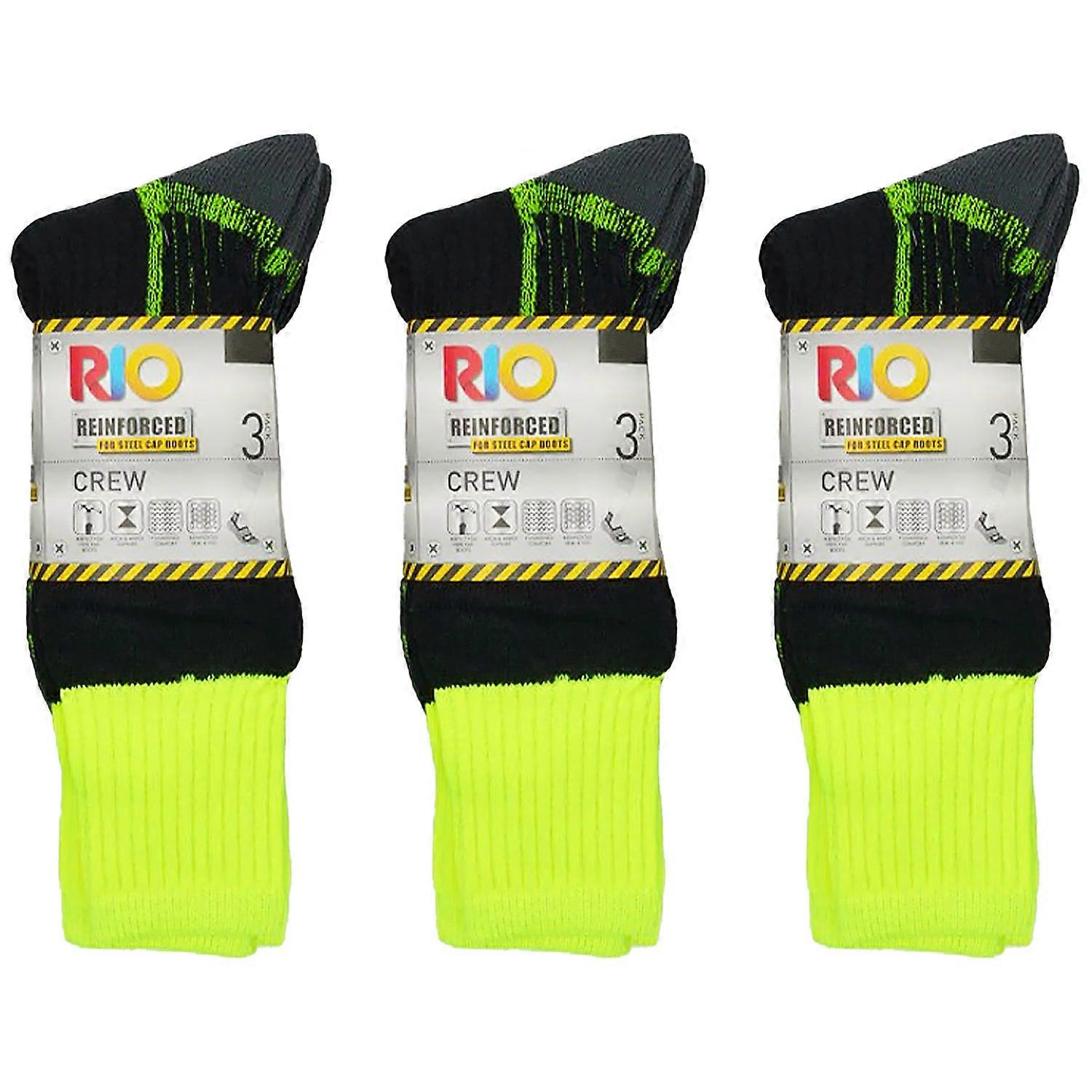9 Pair Rio Reinforced For Steel Cap Boots Crew Mens Thick Tough Work Socks Black Fluro Yellow Hi Vis Bulk