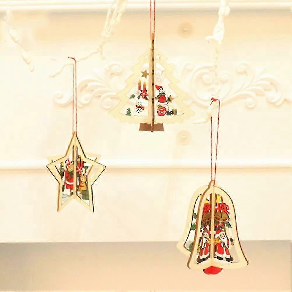 9 Pieces Wooden Christmas Tree Decoration Christmas Tree Christmas Christmas Star Wooden Christmas