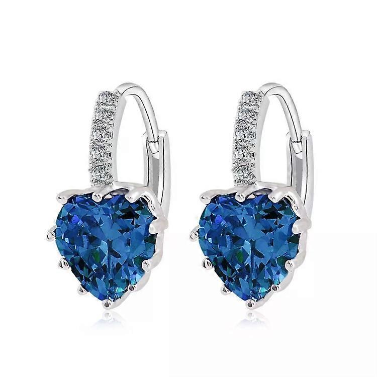 925 Sterling Silver Heart Earrings with Light Blue Cubic Zirconia -