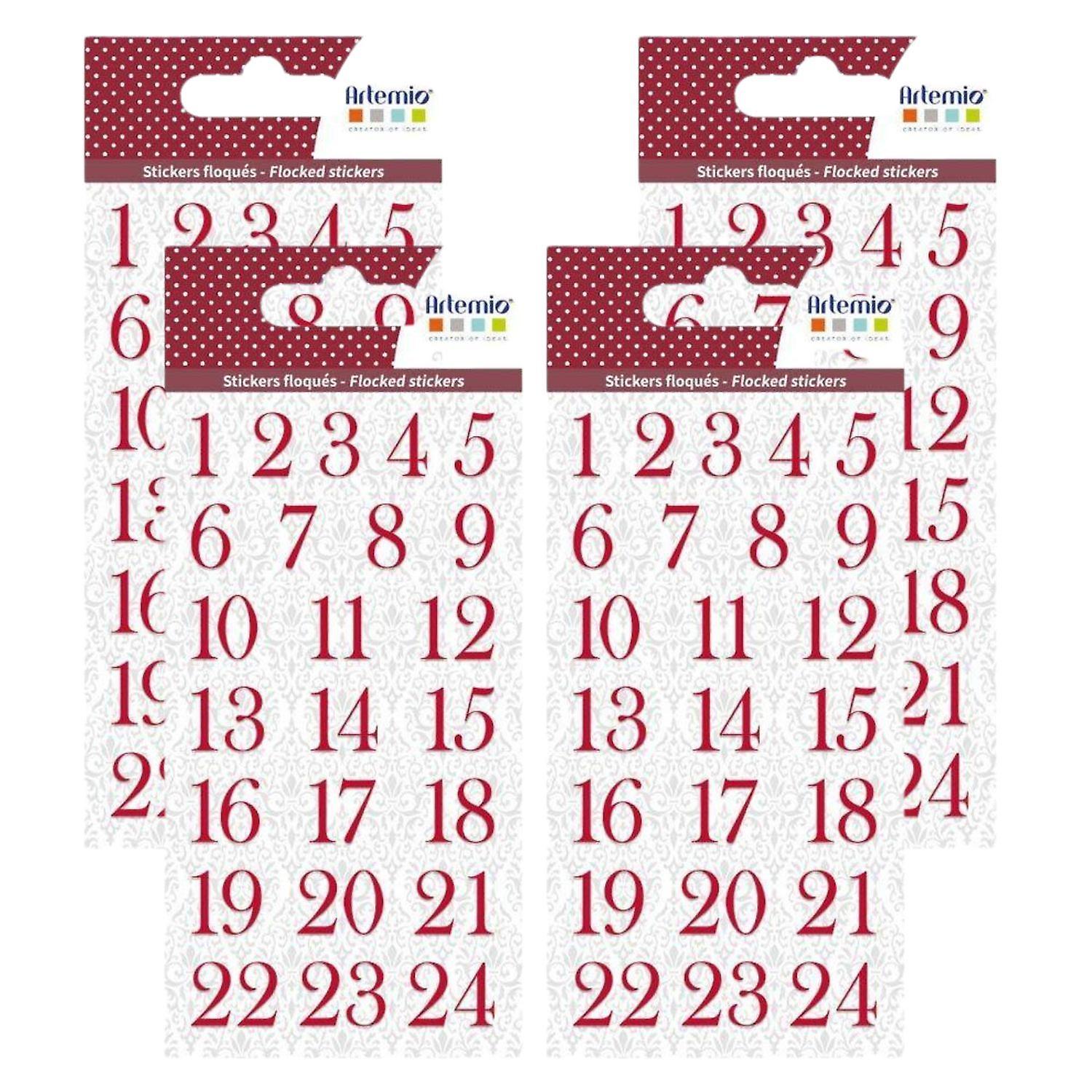 96 red flocked numbers stickers for Advent Calendar - Barok