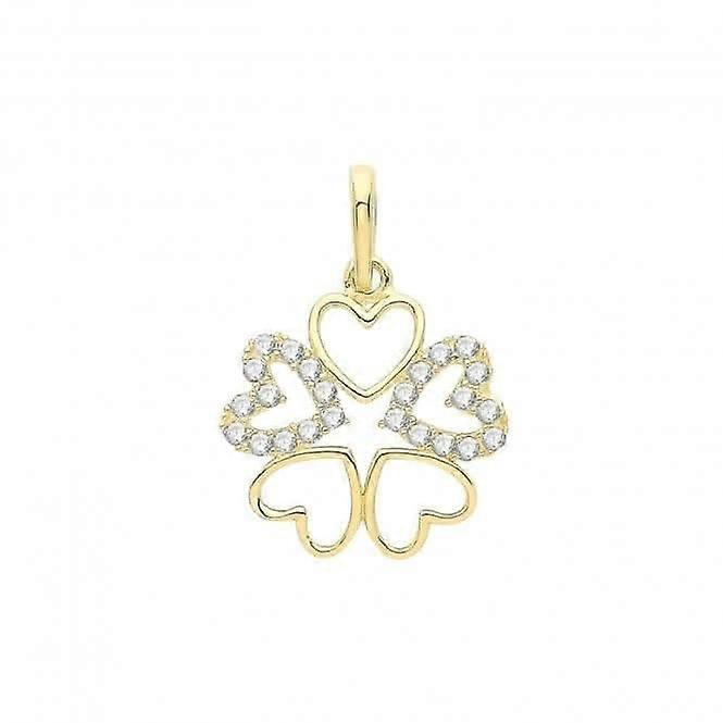 9ct Gold Zirconia And Plain Hearts Pendant PN1251