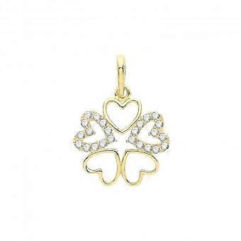 9ct Gold Zirconia And Plain Hearts Pendant PN1251