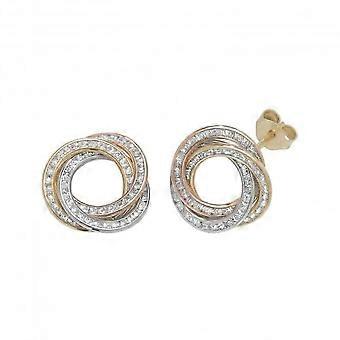 9ct Tricolour Gold Zirconia Stud Earrings ES172