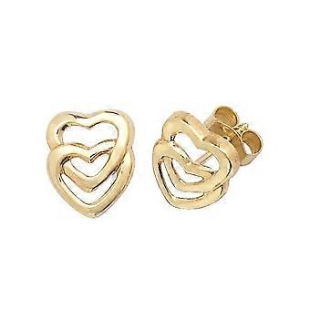 9ct Yellow Gold Dbl Heart Stud Earrings ES309
