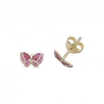 9ct Yellow Gold Enamel Butterfly Stud Earrings ES377