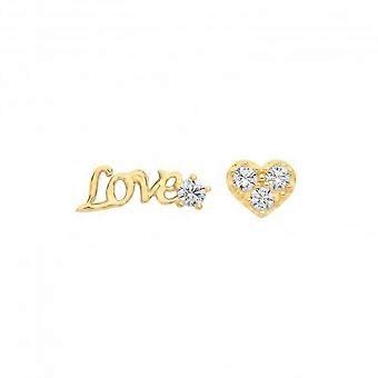 9CT Yellow Gold Love Set Stud Earrings with Zirconia ES1633
