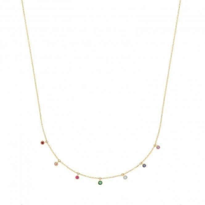 9ct Yellow Gold Rainbow Zirconia Drop Necklet NK1612