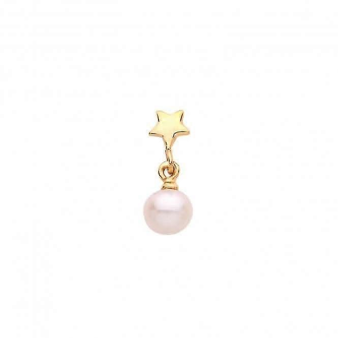 9ct Yellow Gold Star Cartilage 6mm Post Stud With Dangle Pearl ES1917