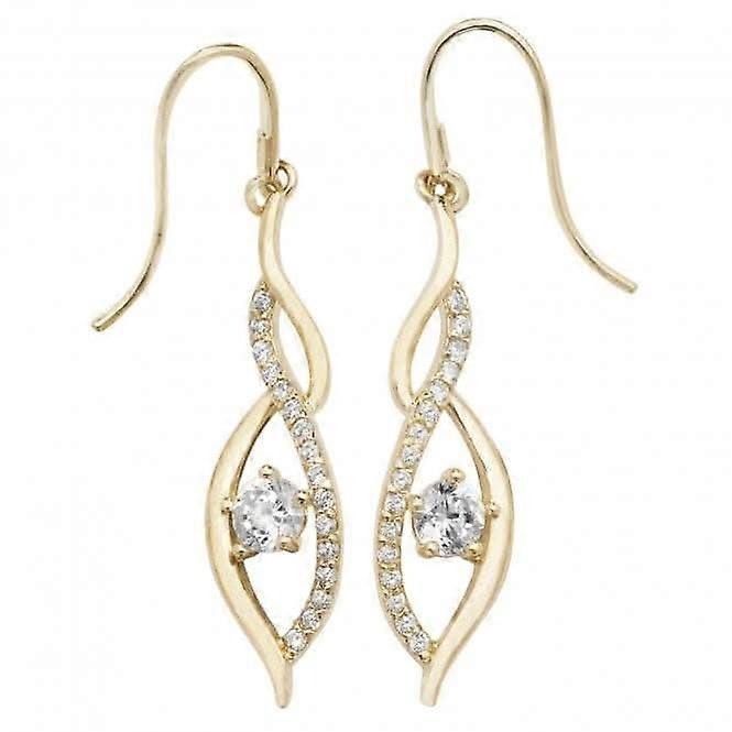 9ct Yellow Gold Zirconia Fish Hook Drop Earrings ES537