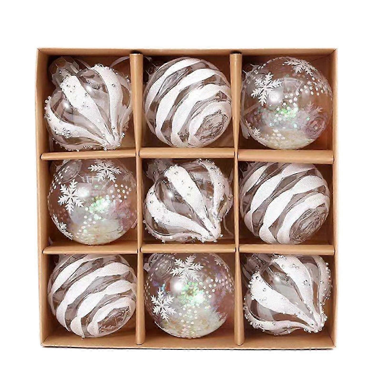 9pack/lot Brighten Holidays With Dazzling Christmas Decorations PET Christmas Tree Decorations Christmas Tree Baubles, White