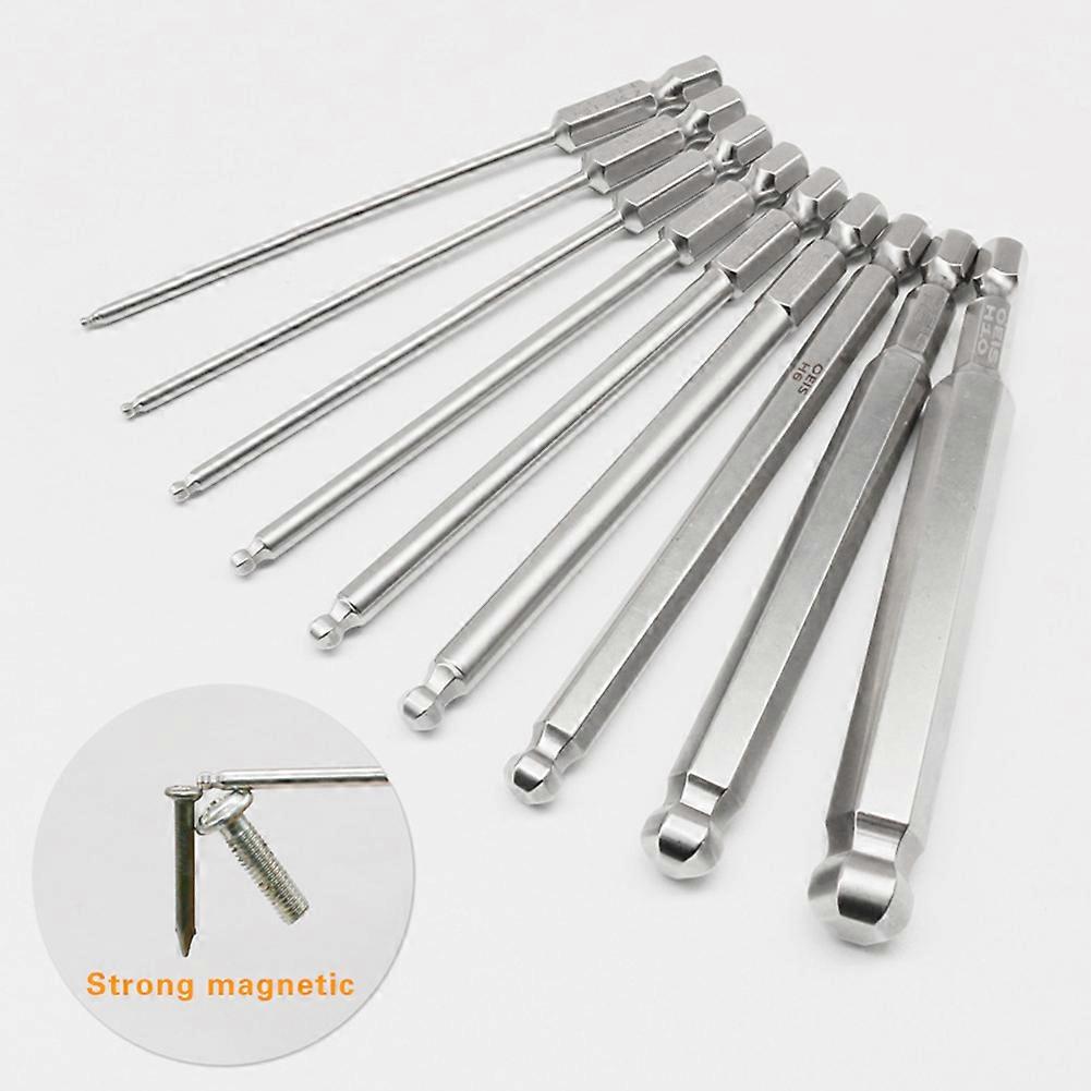 9Pcs Ball End Screwdriver Hex Bit Set 100mm Long Ball Magnetic Driver Head Bit for Home Furnishing Manufacturing