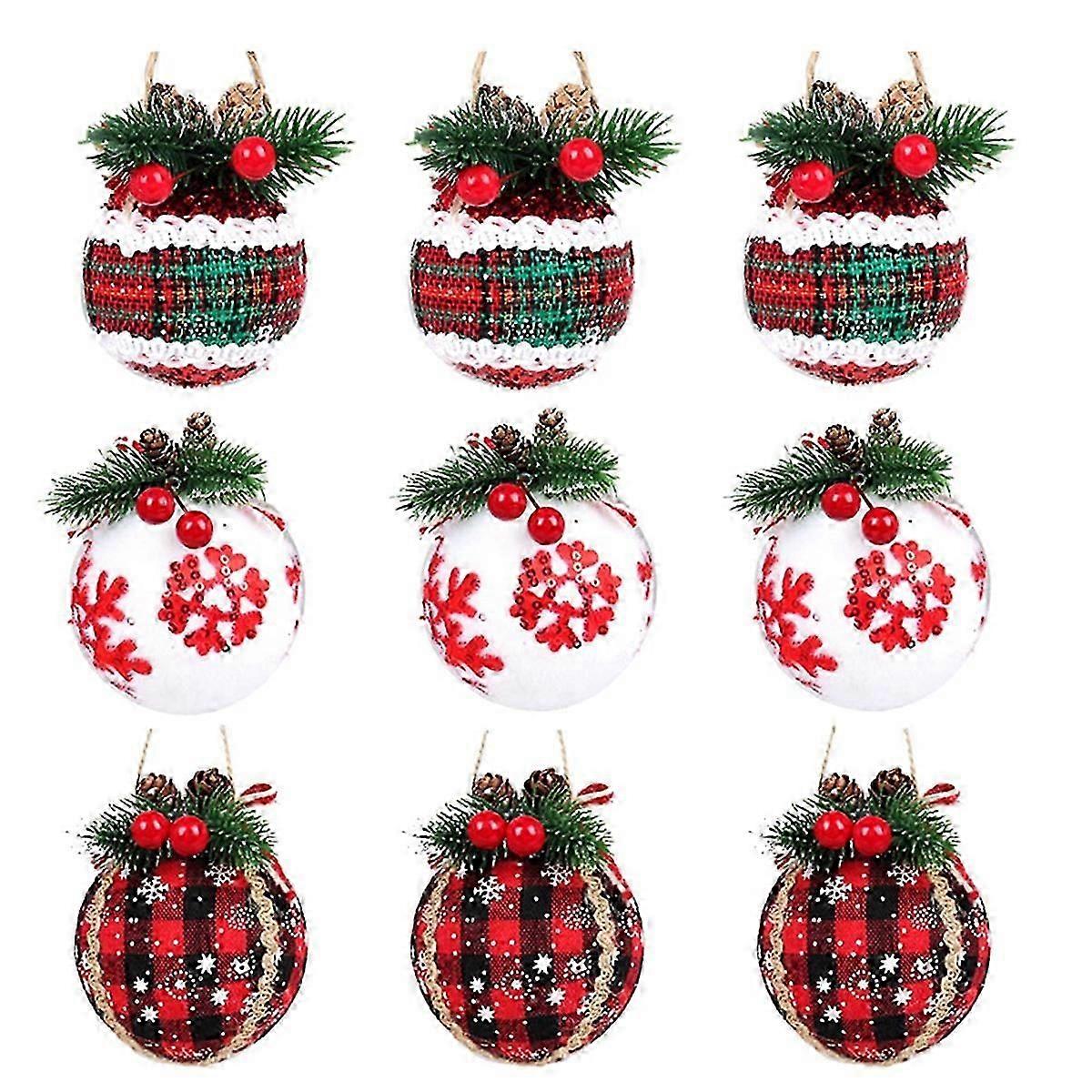 9PCS Christmas Ball Ornaments 3.15Inch Christmas Check Fabric Wrapped Balls Pendants for Christmas Decor A
