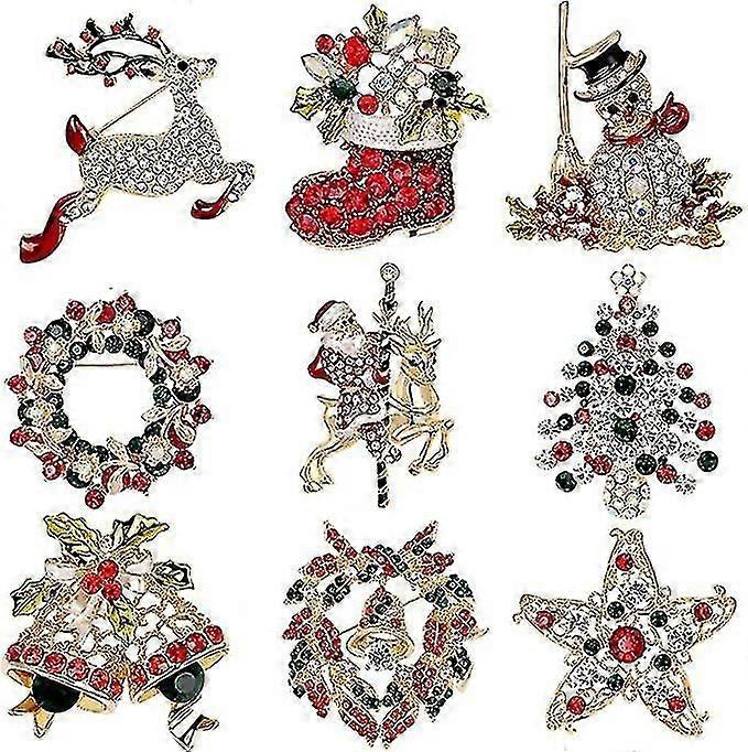 9pcs Christmas Brooch For Christmas Decoration Ornaments Gifts Haoyi