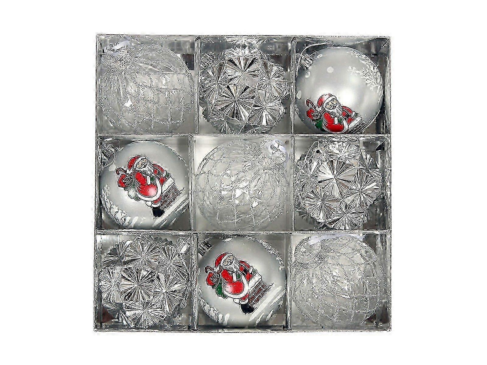 Keywords: Christmas Tree Balls, Xmas Tree Hanging Ball Ornament, Plated Plastic Colored Christmas Ball, Christmas Ball Set Pendant, Prom OrnamentThese Christmas tree balls are new and brightly colored, making this Christmas perfect and spending a wonderful time with family.Features:Colored and bright, 9 Christmas-themed balls in 3 different designs.Complement your Christmas decorations for a festive atmosphere.Made of thick, shatter-resistant plastic with a high-quality finish for durability and safety.Easy to hang with the included hanging ropes.Perfect for Christmas trees, wreaths, windows, railings, and more.Wrapped in a see-through gift box with multi-compartments, the perfect gift for your friends or family.Specifications:Material: PS, PETColor: SilverBall Size: 8cm in diameterPackage Size: 24x24x8cmPackage Contents:9 x Christmas Tree Christmas BallsPlease Note: Please allow slight errors due to manual measurement and different monitors.