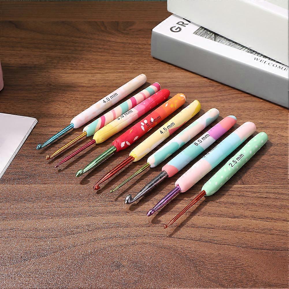9Pcs/Set 14cm Aluminum Alloy Sweater Needles Soft Stitch On Handles DIY Colorful Ergonomic Crochet Hooks Knitting Tool