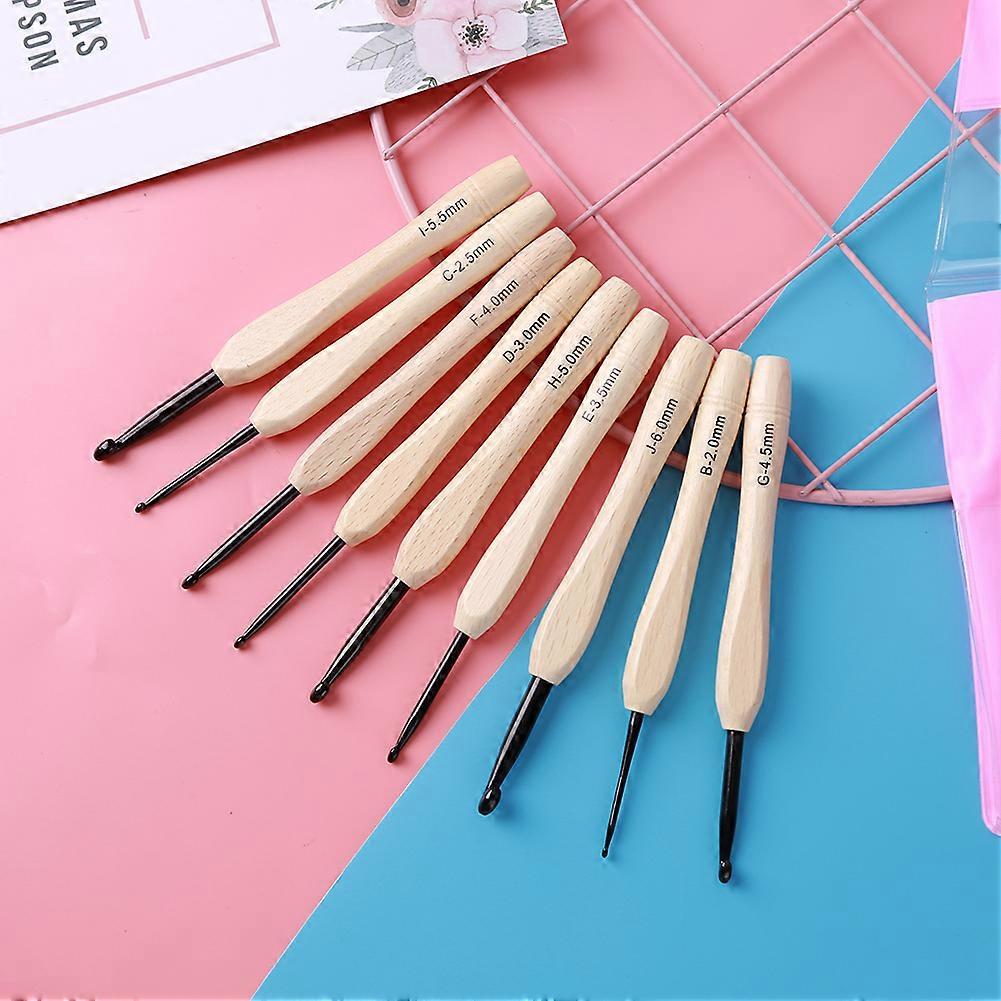 9Pcs/Set Crochet Hooks 2.0-6.0mm Aluminum Wood Crochet Needles Crochet Ergonomic Knitted Sweater Sets