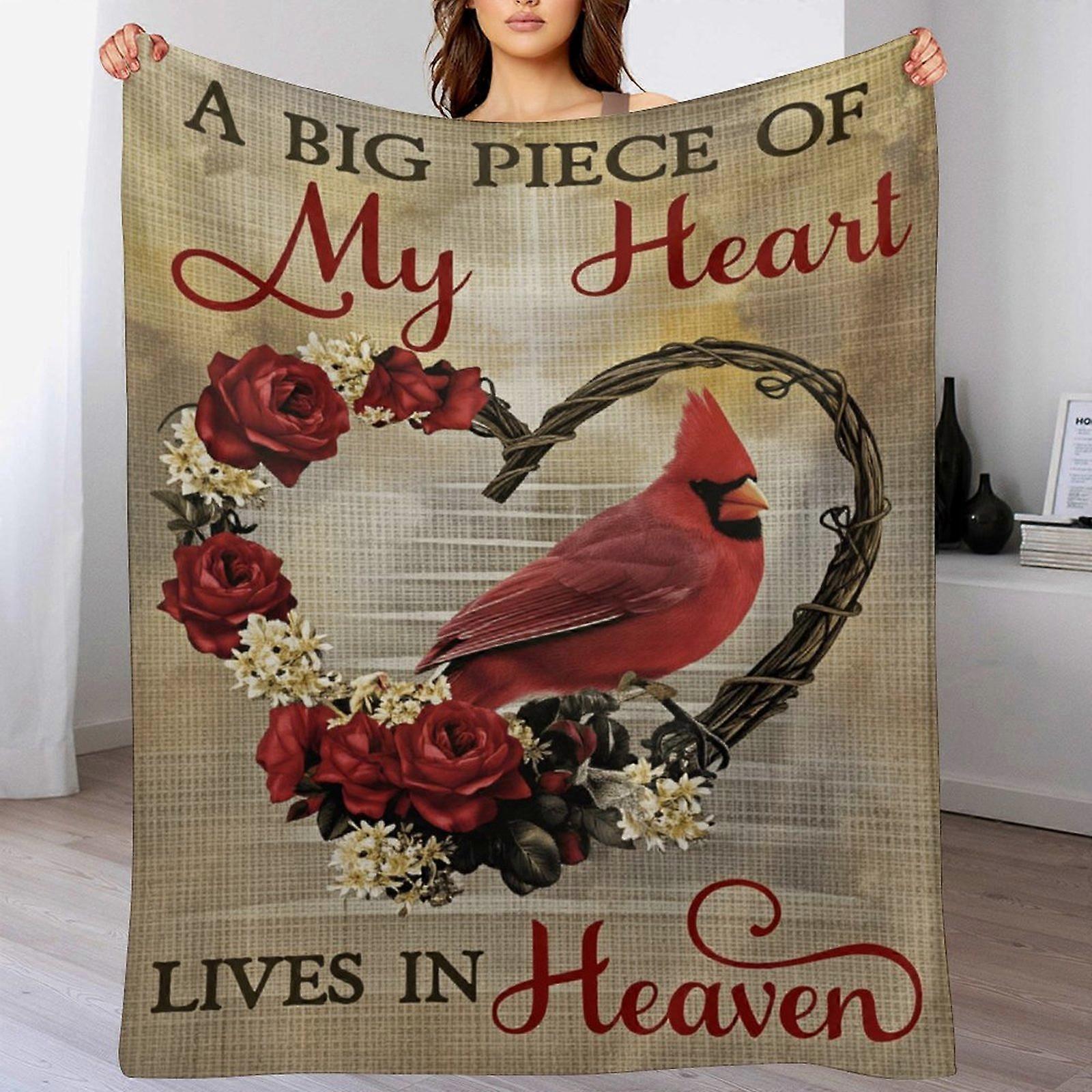 "A Big Piece Of My Heart Lives In Heaven" Cardinal Bird Print Flannel Blanket - Soft Warm Throw | Sympathy Gift for Grieving Individuals