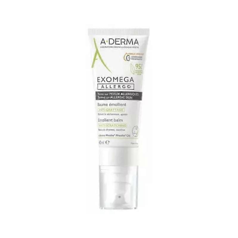 A-DERMA Exomega Allergo Anti-Scratching Emollient Balm 40ml is a face and body care that soothes the dryness, redness and irritations, reduces itching at the level of eyelids of dry skins prone to atopic eczema, from birth.Its formula based on Rhealba Oat seedling extract benefits from the patented sterile cosmetics technology for application from birth:Triply soothing action thanks to Rhealba Oat seedlings strengthened by BIOVECT, natural origin vector, for a soothing of itching, diminution of redness and spacing out irritation peaks.It reduces the dryness and reinforces the skin barrier thanks to Ilaxerine, Vitamin B3 and with emollient heart of formulas.Rhealba Oat seedling extract helps rebalance the microbiome.Its rich hybrid texture combines the slipperiness of a cream and the nourishment of a non-greasy, non-sticky balm.95% of ingredients are of natural origin.Preservative free. Fragrance free. Animal origin ingredient free.Tested under dermatological control. Tested on allergic skins and on dry eyelids prone to atopic eczema.Formulated to minimise the risks of allergic reactions. Rhealba Oat from Organic Farming.Made in France.