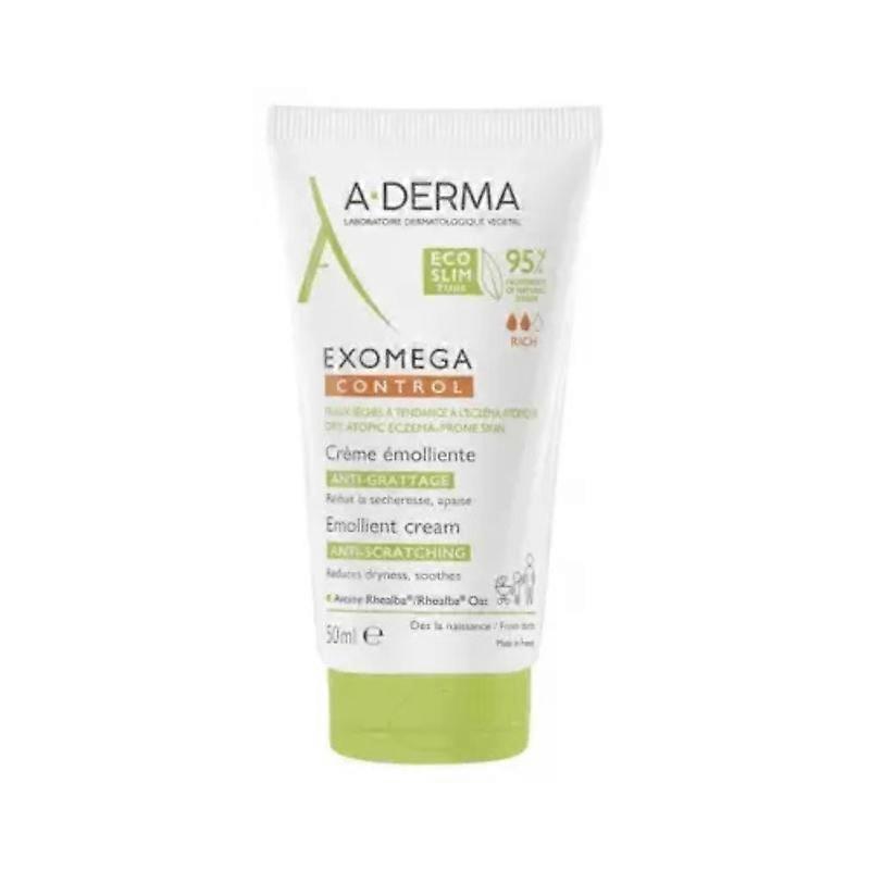A-DERMA Exomega Control Emollient Cream Anti-Scratching 50ml is a cream with a rich texture indicated for the dry skins with tendency to the atopic eczema of all the family.It soothes immediately and durably, nourishes and reinforces the cutaneous barrier to reduce the dryness and alleviate irritations, to space the peaks of dryness.Its natural formula contains an extract of seedlings of Oats Rhealba resulting from the Organic farming.Its rich texture is absorbed quickly and offers a non-sticky finish.Its new tube is eco-designed and lightened, with - 33% of plastic and composed of 40% of recycled plastic.95% of the ingredients are of natural origin.Dermatologically tested.Formulated to minimize the risk of allergic reactions.Fragrance free.Made in France.