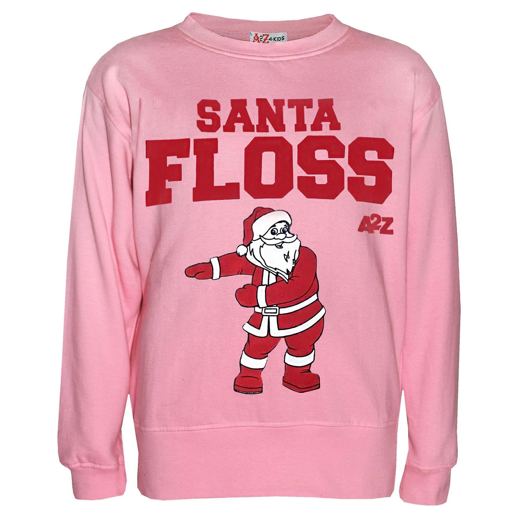 A2Z 4 Kids Girls Christmas BabyPink Jumper Santa Floss Print Xmas Gift Age 2-13Y