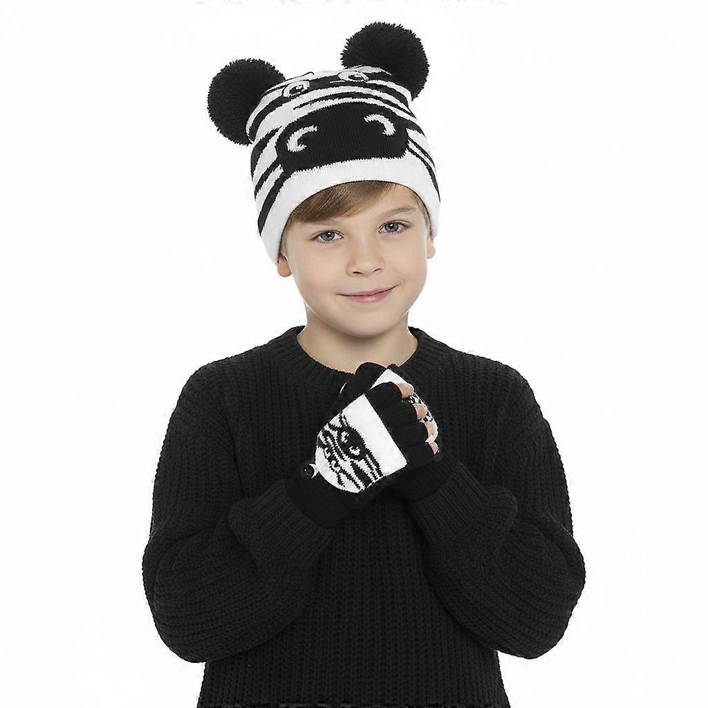 VERSATILE STYLE:The girls and boys novelty zebra hat and glove set includes a stylish knitted beanie, making it an ideal accessory for everyday wear. Constructed for thermal insulation, this beanie provides essential warmth and comfort during the colder winter months. Its versatile design allows it to easily coordinate with various clothing styles, ensuring that children stay cozy and fashionable during outings.HIGH-QUALITY MATERIAL:The warm winter hat and gloves set is made from high-quality materials, including 75% acrylic, 22% polyester, 2% elastane, and 1% elastane. This premium acrylic is chosen for its softness and durability, ensuring a cozy feel against the skin. It also offers excellent insulation to keep you warm during chilly autumn and winter days.COMFORT:The Girls Boys Novelty Animal Hat and Mitten Set features knitted beanies with a soft fleece lining for exceptional comfort. Made from thick, lightweight, and flexible fabric, these hats ensure a warm and pleasant wearing experience. They are designed for durability, making them ideal for long-term use.OUTDOOR WARM HATS AND GLOVES SETS:Winter accessories are essential for keeping your head and ears warm, as well as your hands with gloves. These items provide comfort during various outdoor activities and everyday tasks. They are particularly useful for dog walking, cycling, hiking, motorcycling, fishing, hunting, snowboarding, skiing, attending sporting events, and commuting. Overall, these accessories are crucial for staying warm in cold conditions.AVAILABLE:If you are seeking a fashionable accessory to enhance your streetwear ensemble, we recommend our animal hat and mitten set, designed for both girls and boys. This set is available in a universal size and is constructed from stretchy materials, which provide increased comfort and accommodate a variety of users.