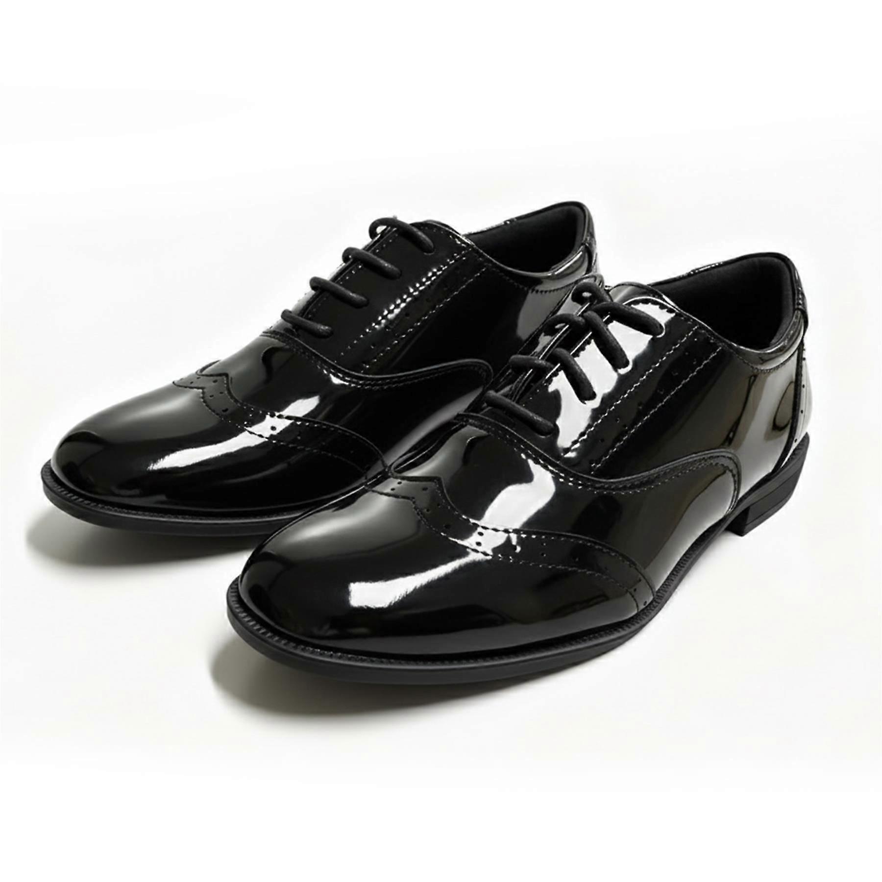 CLASSIC BROGUE SCHOOL DESIGN:These boys lace-up school shoes feature a traditional brogue pattern for a smart, polished look suitable for daily school wear, assemblies, and formal occasions. Designed to complement school uniforms perfectly, the refined detailing adds a timeless touch while offering dependable everyday practicality.COMFORTABLE FOR ALL-DAY WEAR:Made with a cushioned inner lining and padded collar, these shoes provide supportive comfort throughout the school day. The soft interior reduces rubbing, making them ideal for walking, playground activities, and classroom use without causing discomfort or fatigue.DURABLE MATERIAL AND LEATHER-LOOK FINISH:Crafted with a long-lasting leather-look upper for easy cleaning and everyday resilience. The material maintains its shape, resists scuffing, and stays looking smart, ensuring your childs shoes remain presentable week after week with minimal maintenance required.NON-SLIP SOLE FOR SAFETY:Designed with a sturdy non-slip rubber outsole for enhanced grip on multiple surfaces. These shoes help provide stability in wet or dry conditions, offering added protection during busy school days, outdoor play, and walking on polished indoor floors.MATTE OR PATENT FINISH GREAT GIFT IDEA:Available in both black and black patent styles, allowing the perfect choice for school requirements or formal events. Ideal as a back-to-school essential or as a thoughtful gift for birthdays and special occasions. Offered in sizes UK 1-7.