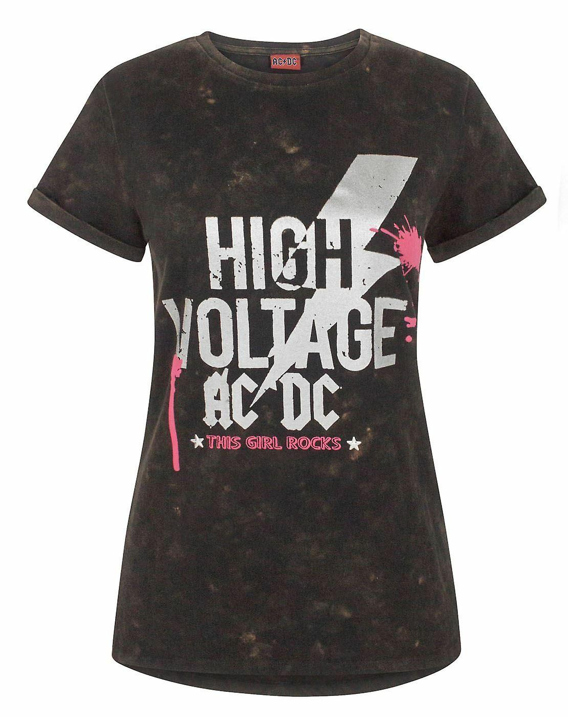 AC/DC Womens Short Sleeved T-Shirt Black Slogan Text With Band Logo