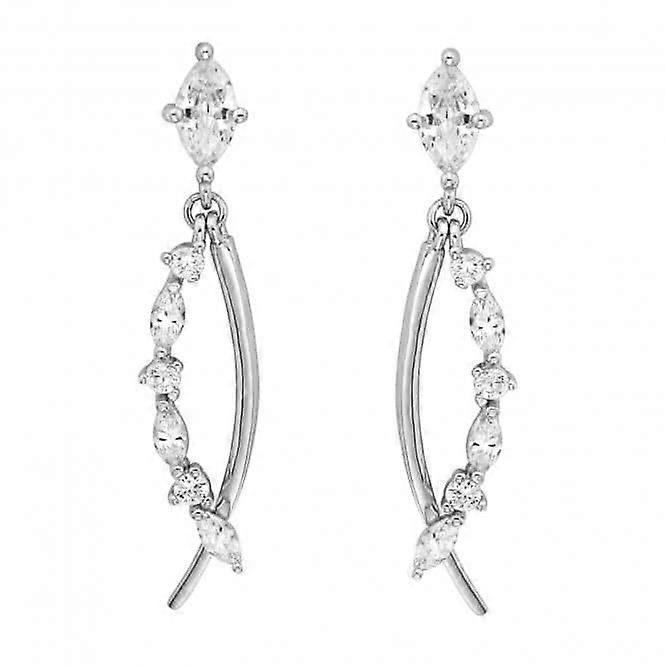 Acotis Silver Drop Earrings Rhodium Plated Zirconia G51207