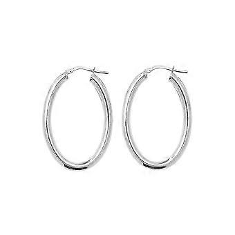 Acotis Silver Hoop Earrings Oval Plain G5259N