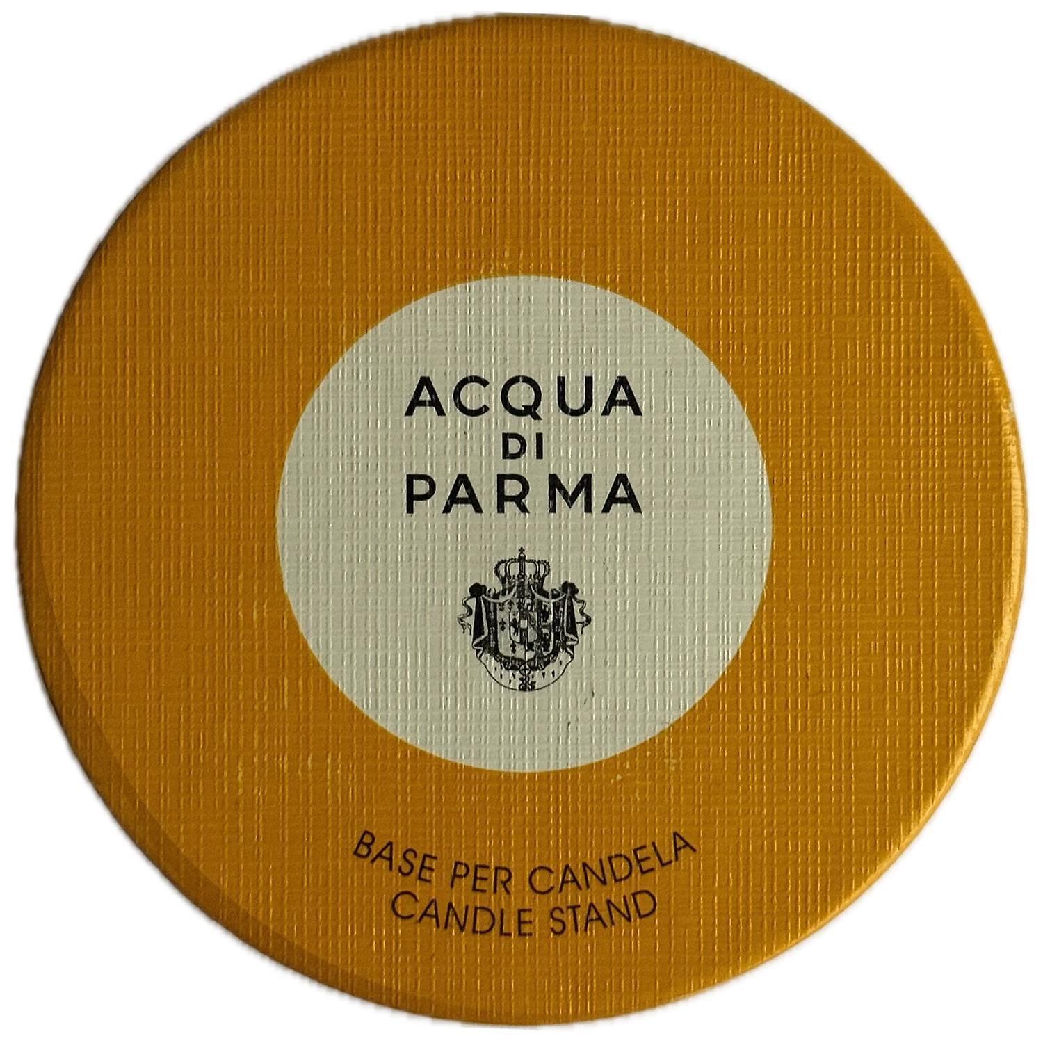 Acqua di Parma Candle Base / Stand in white. Made from Bakelite, this stand protects your surface from wax spillage and from heat. Has the Acqua di Parma logo embossed on one side and can be wiped clean. Candle not included.
