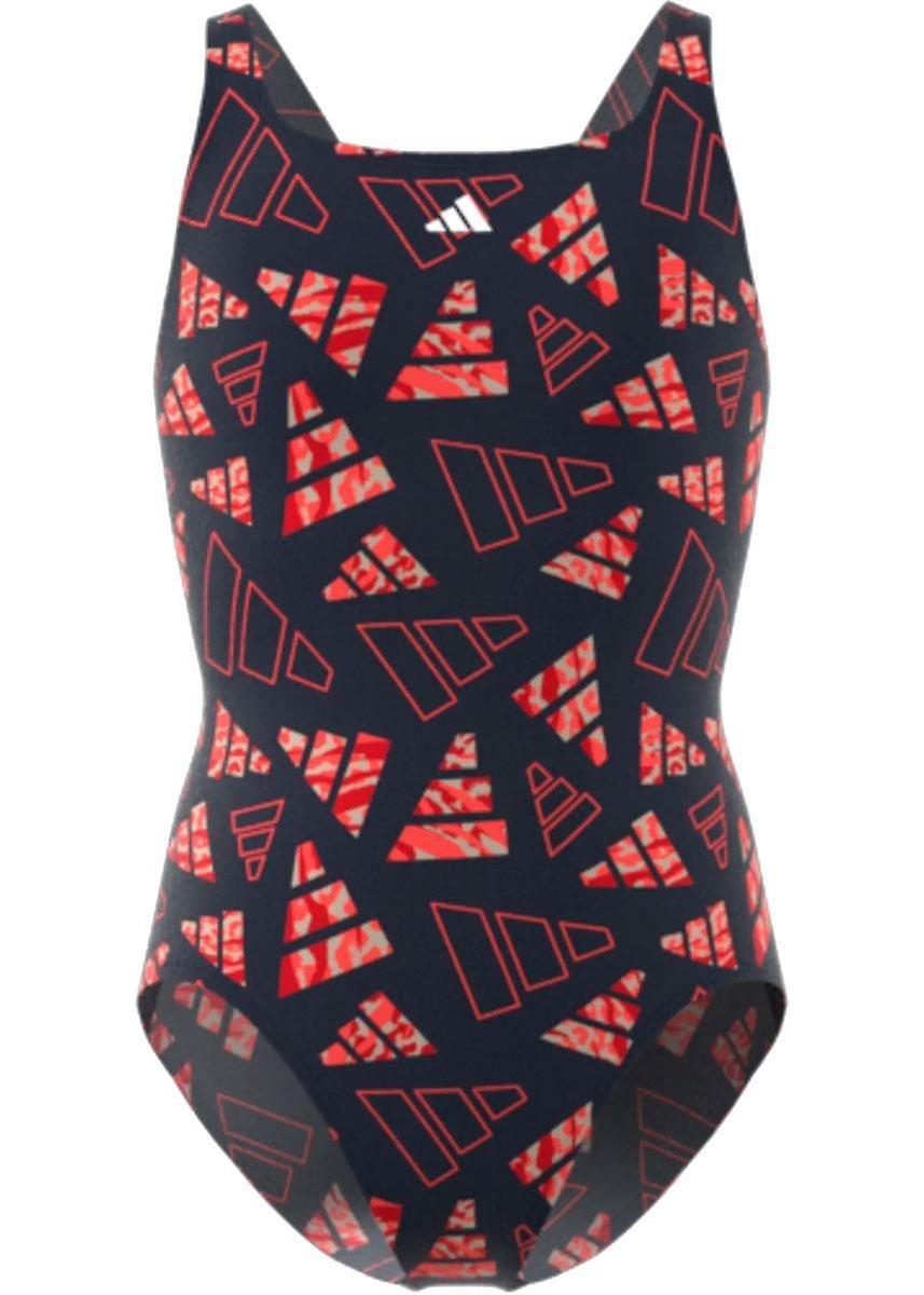 Adidas AOP Bars Swimsuit - Black/Red - Girls