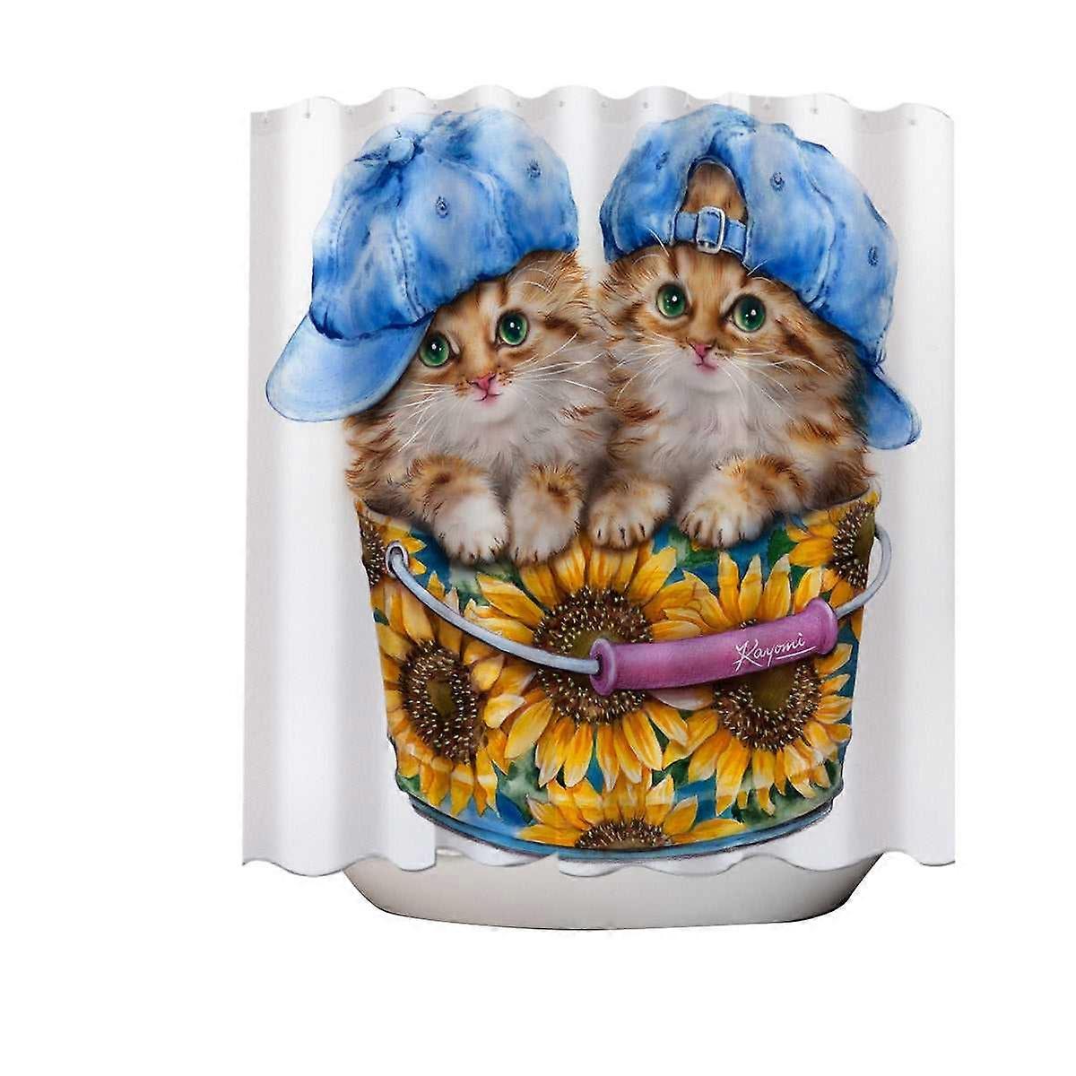 Adorable Funny Kittens Sunflower Bucket Shower Curtain