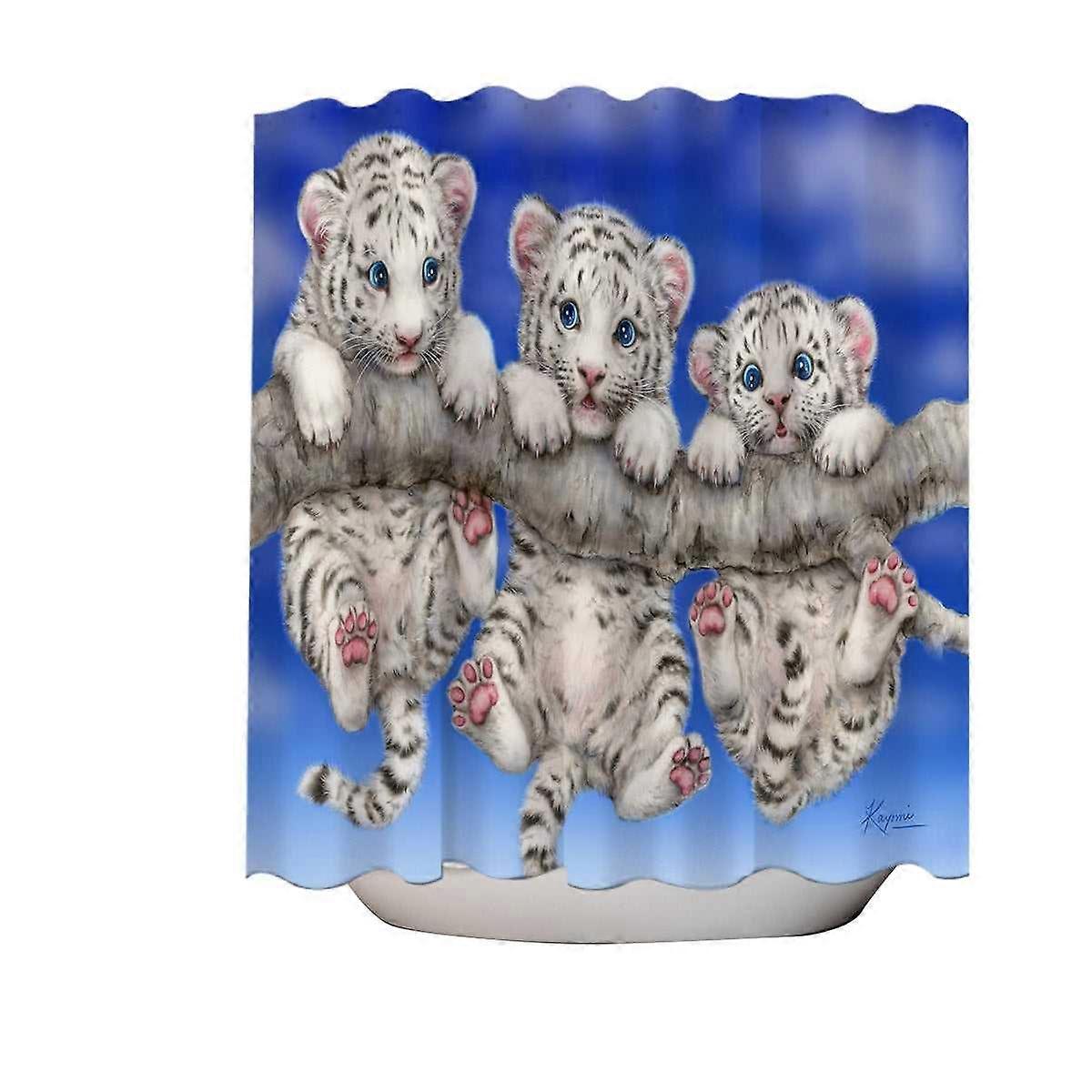 Adorable White Tiger Triplets Cubs Shower Curtain