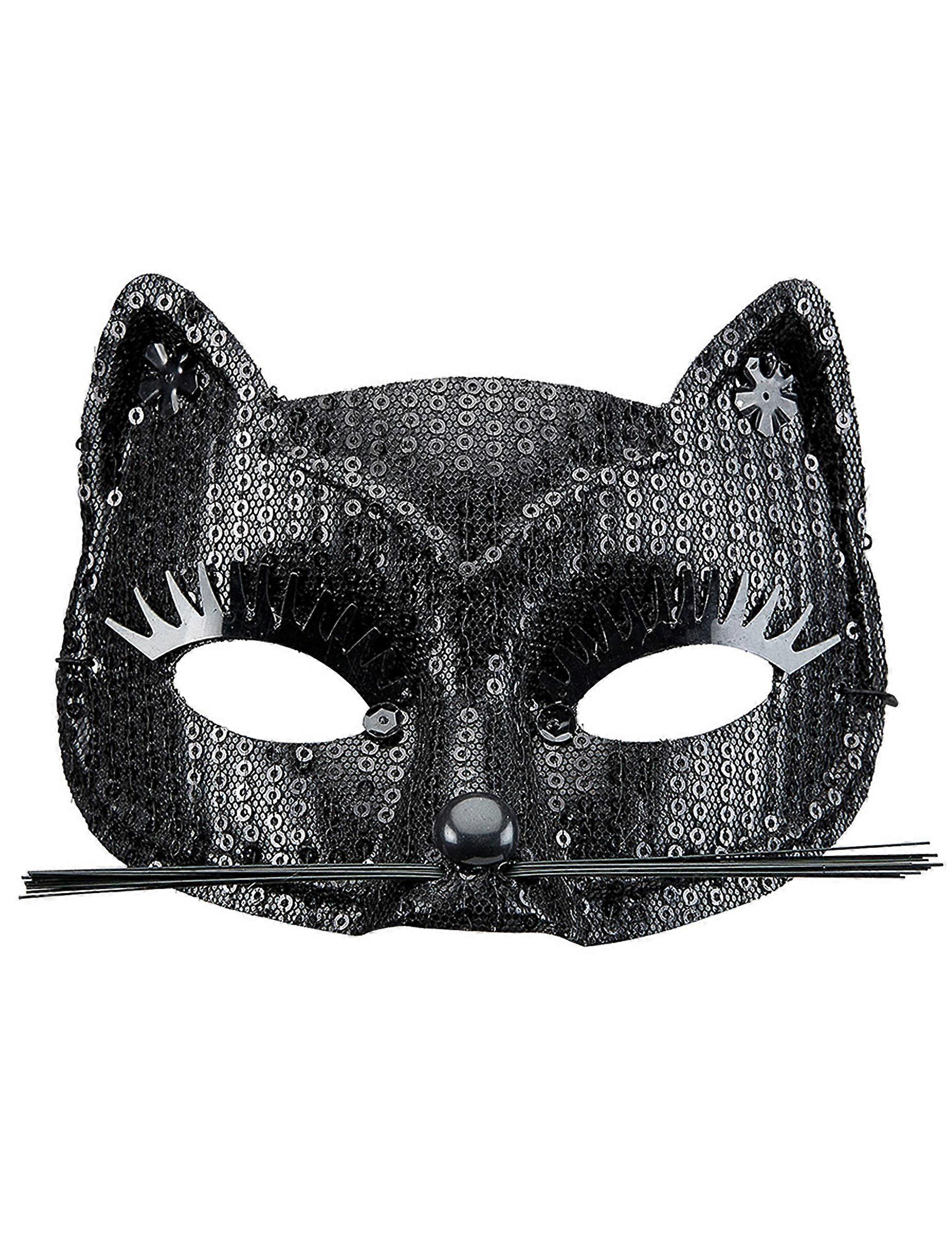 Changez vous en chat noir pour le Carnaval Ce loup de chat est pour adulte pour adulte. Noir, il est recouvert d& 39;un tulle noir très fin. Des mini sequins noirs sont également présents à l& 39;avant de ce masque pour lui donner un côté brillant. Les oreilles et les yeux sont mis en valeur par des faux cils et des fleurs en plastique noir. Des moustaches en plastique noir sont présentes au niveau du nez. Ce masque se maintiendra au visage à l& 39;aide d& 39;un élastique. Il mesure environ 17 cm de largeur.   Ce loup sera parfait pour complétre un déguisement de chat noir ou de Catwoman à l& 39;occasion du Carnaval ou pour Halloween.  © Copyright Widmann SRL Accessoires inclus : Loup,