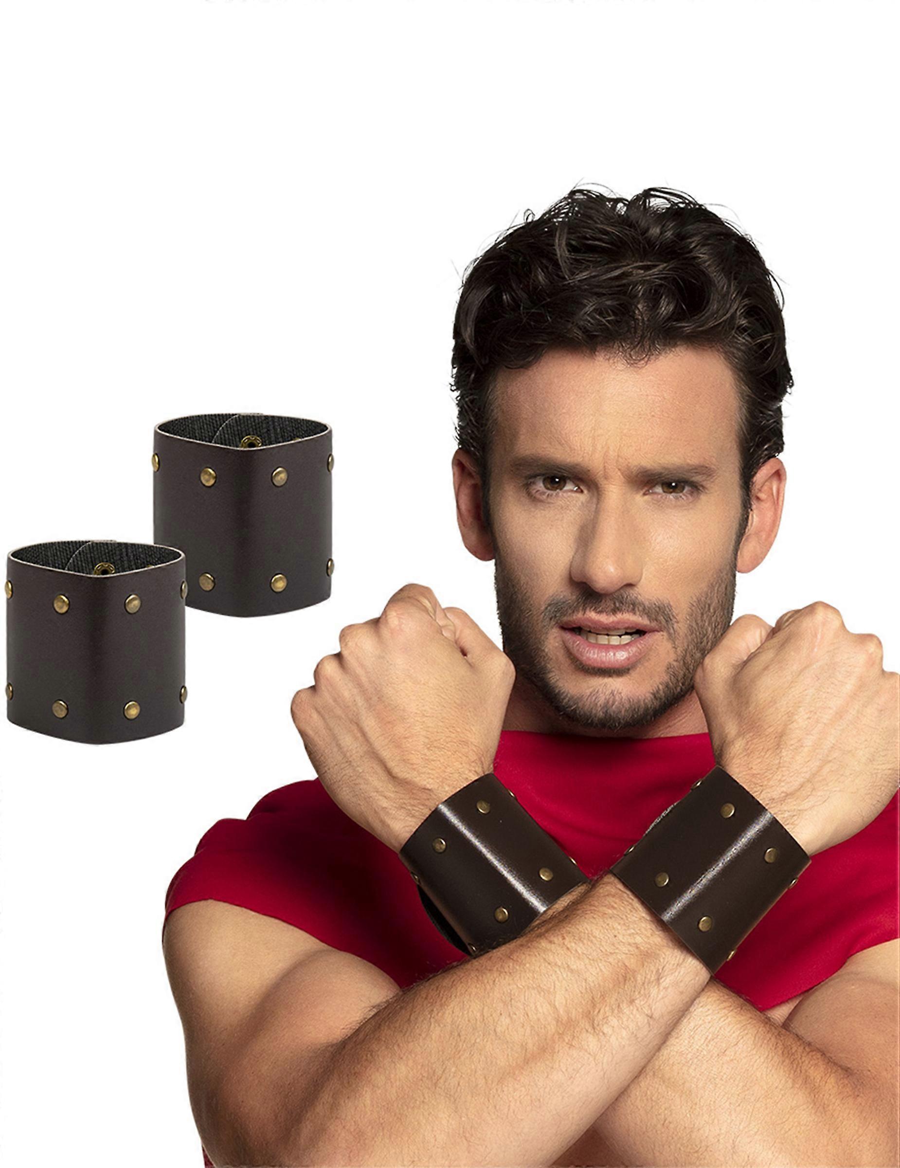 Rentrez dans l'arène Ce lot se compose de 2 bracelets de guerrier romain pour adulte.    Ils sont de couleur marron imitation cuir avec des boutons dorés.   Ces bracelets seront parfaits pour compléter un déguisement de gladiateur lors d& 39;une fête costumée ou à l& 39;occasion du Carnaval   Accessoires inclus : 2 bracelets , Matière : Polyester,