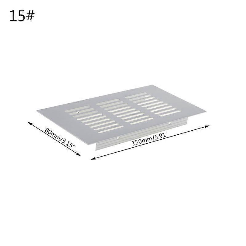 Air vent aluminum alloy perforated sheet ventilation grilleOOTDTY Features: Made of aluminum alloy, anti-corrosion. Easy to install and clean. Ideal for ventilation of enclosed spaces. Suitable for cabinets, wardrobes, cupboards. Specification:Material: Aluminum Alloy Length: 15cm, 20cm, 25cm, 30cm, 40cm, 50cm Width: 8cm/3.15 inch Color: SilverQuantity: 1 PcNote: 1. Please allow 0-1cm error due to manual measurement. Pls make sure you do not mind before bidding.2. Due to the difference between different monitors, the picture may not reflect the actual color of the item. Package Included: 1 x Vent Perforated Sheet