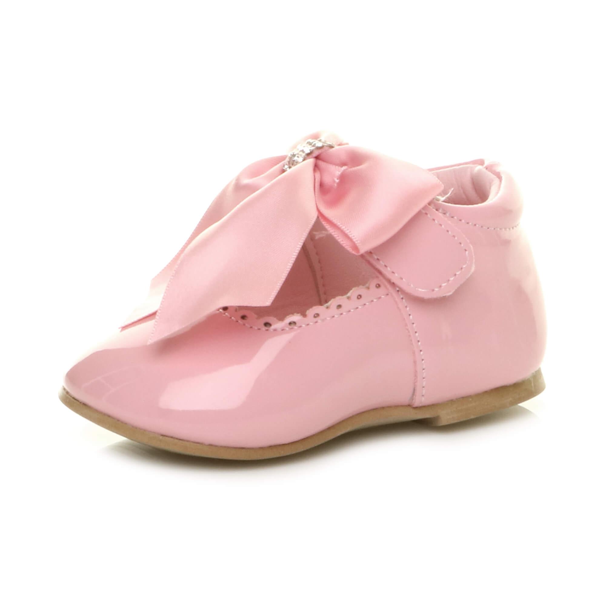 Ajvani Girls infants childrens ribbon bow scalloped bridesmaid party mary jane shoes