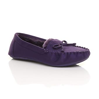 Ajvani womens faux sheepskin fur flexible sole boat shoes moccasins slippers
