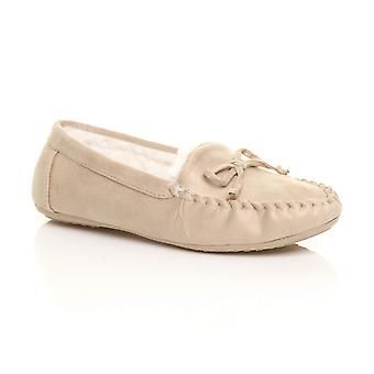 Ajvani womens faux sheepskin fur flexible sole boat shoes moccasins slippers