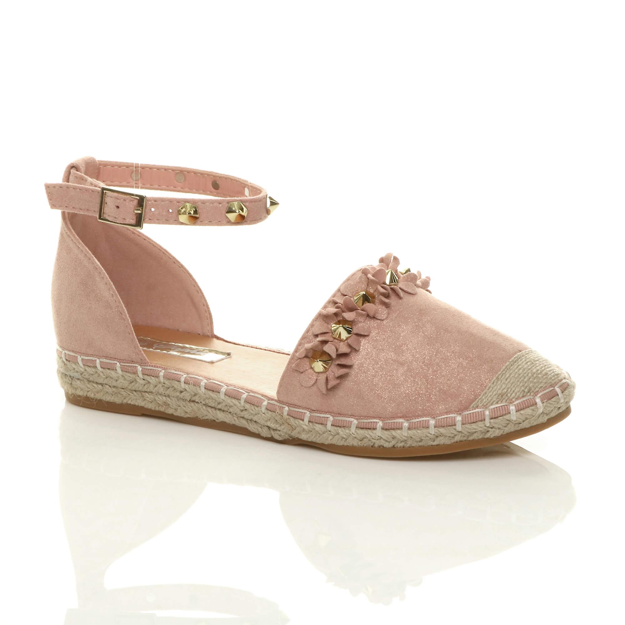 Ajvani womens flat flower studded espadrille glitter summer beach sandals shoes