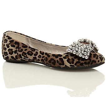 Ajvani womens flat jewel diamante bow ballerina loafers slip on pumps dolly shoes