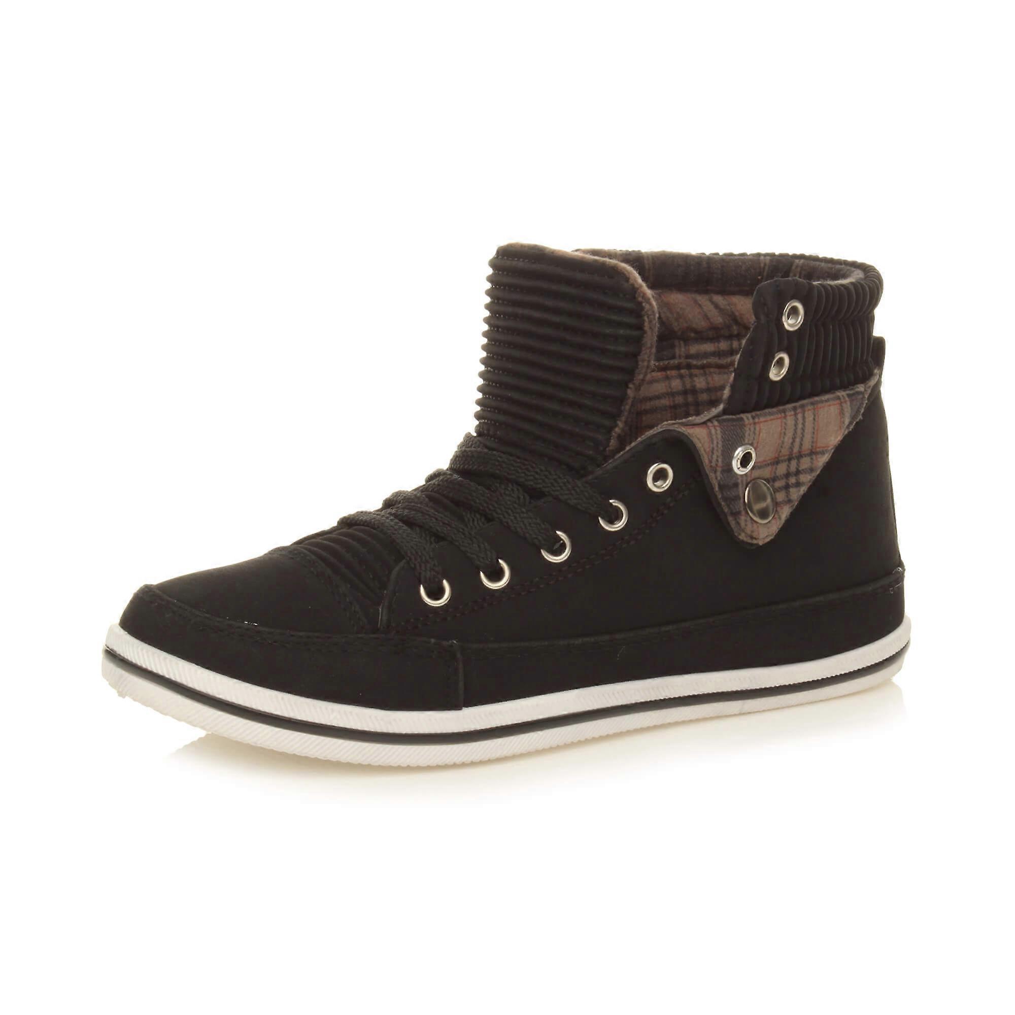 Ajvani womens flat lace up sports high hi top pumps trainers shoes