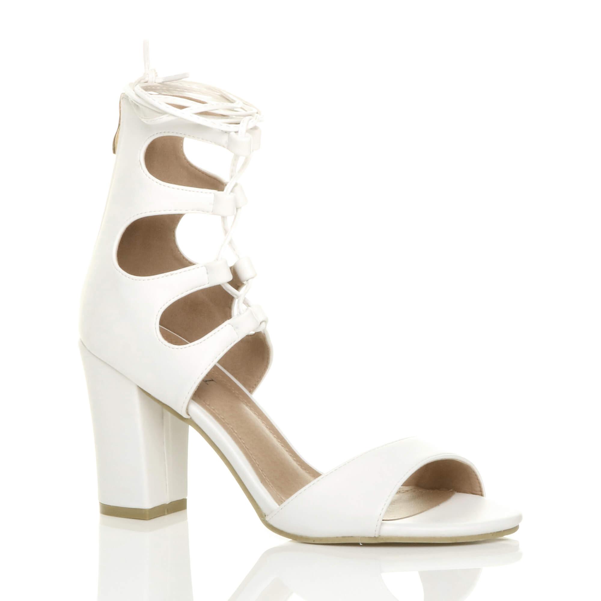 Ajvani womens high block heel ghillie caged tie lace up cut out peep toe shoes sandals