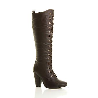 Ajvani womens high chunky block heel lace up calf knee military combat biker boots