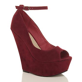 Ajvani womens high heel wedge platform peep toe court shoes ankle strap sandals