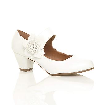Ajvani womens low block kitten heel mary jane style flower leather lined work court shoes pumps
