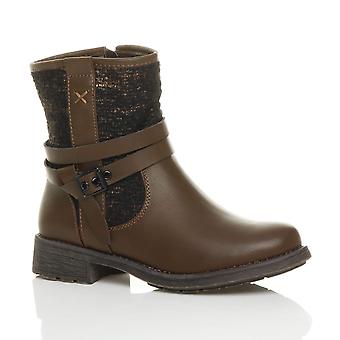 Ajvani womens low heel belt buckle straps zip metallic tweed twill ankle boots