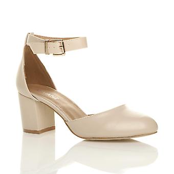 Ajvani womens low mid block heel ankle strap mary jane court shoes sandals